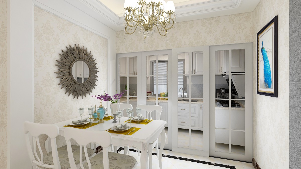 本案的设计风格为简约欧式,营造典雅、自然、高贵的气质、浪漫的情调是本案的主题。吸取了传统欧式风格的“形神”特征,藉着室内空间的解构和重组,便可以满足我们对悠然生活的向往和追求,缔造出一个令人心弛神往的写意空间。