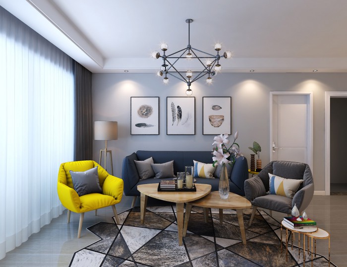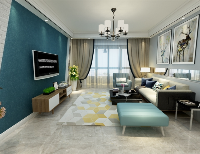【紫薇台】蓝色调简约北欧风格装修效果图