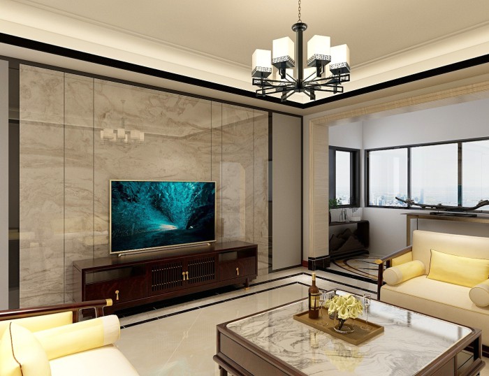 【威海威森万达花园】95㎡现代风格客厅效果图清爽冰凉