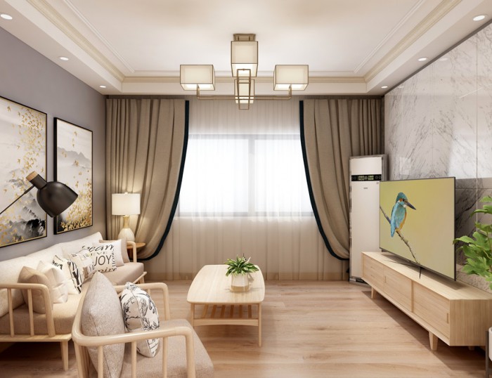 威海装修公司-莱茵小镇107平现代中式家装效果
