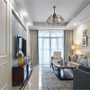 整体装修设计是孔雀蓝色调,轻硬装,重软装。整体风格主要靠家具软装的搭配来实现。孔雀蓝与金色元素的软装,让空间更具时尚气息。