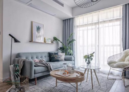 今天给大家推荐的是98㎡北欧风装修,整个家的装修以灰色为基调,视觉上十分清爽大气。再以绿色、原木色作为点缀,空间更加丰