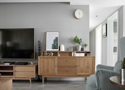 今天给大家推荐的是98㎡北欧风装修,整个家的装修以灰色为基调,视觉上十分清爽大气。再以绿色、原木色作为点缀,空间更加丰
