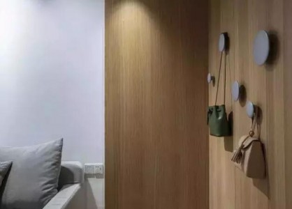 户型并不是很好,属于开门见厅布局,但是屋主很会利用空间和色彩进行隔断。玄关背景墙因为属于承重墙,所以没有办法做嵌入式