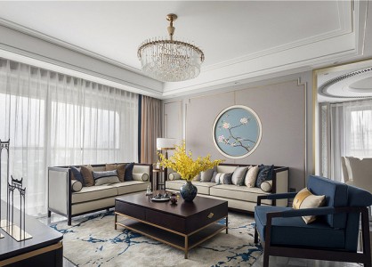 业主夫妇对于中式设计有着特殊的偏爱和情愫。设计师将整体风格定位于新中式,在保留了中式韵味的基础上增加了现代轻奢的元素,打破传统文化的沉寂,加入现代质感的金属线条,低调而奢华。