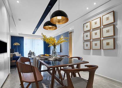 相较于现代简约,轻奢风格在延续着简单利落的同时,更多了股小资浪漫情调,以各种金色元素饰品代替质朴的软装,同时采用更为深沉的颜色和质感的材料,演绎着轻奢生活的休闲与舒适。