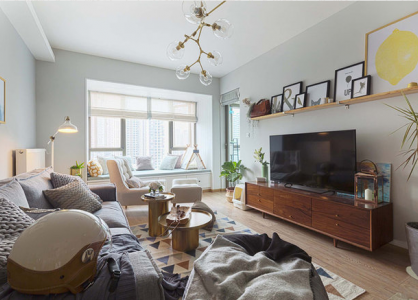 这是一个套内只有60几平米的小户型,没有豪华的装饰品,但房间的每个细节都是精心打造,处处透露着生活的小温馨。通过柔和的色彩,吧网红的INs风格装进家里。电视墙做了简单的隔板,上面摆放着北欧流行的字母装饰…