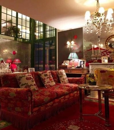 她很喜欢暖色调,房间的主体颜色是红色,家中的沙发、地毯都是红色,特别是沙发还挑了复古红色大花的款式。内景装修华丽,里三层外三层,刘嘉玲为了装修看来是没少下功夫。红色沙发的图案和款式很具有东方气质风格。阳台的采光采景也很不错,没有遮挡物。