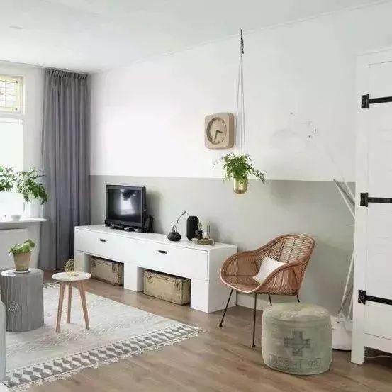乳胶漆还可以采取刷一半留一半的方式,这样能让背景墙的调色更加美观大气。