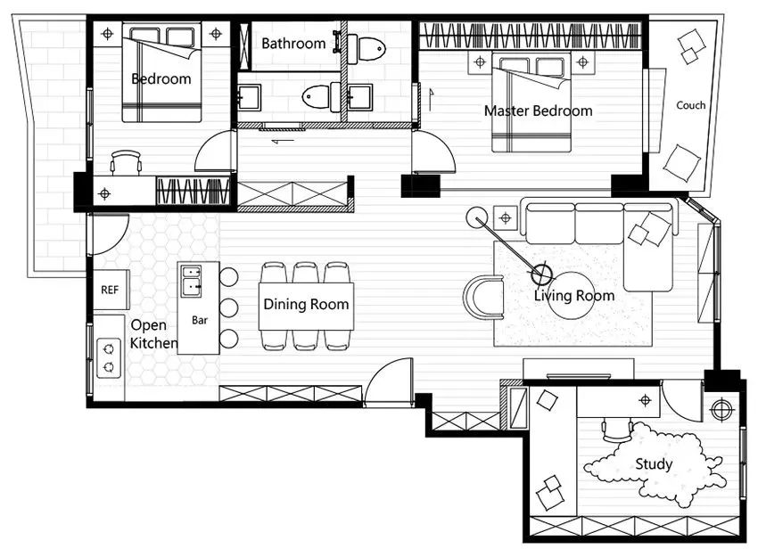 酷,有点高冷,活泼,让人随和,两个看似不能相交的两个词,却因为一个有主见的业主而交集,偏爱工业风的他在装修上坚持了自己的酷,却也不忘跟设计师提出“想要活泼一点”的要求。
