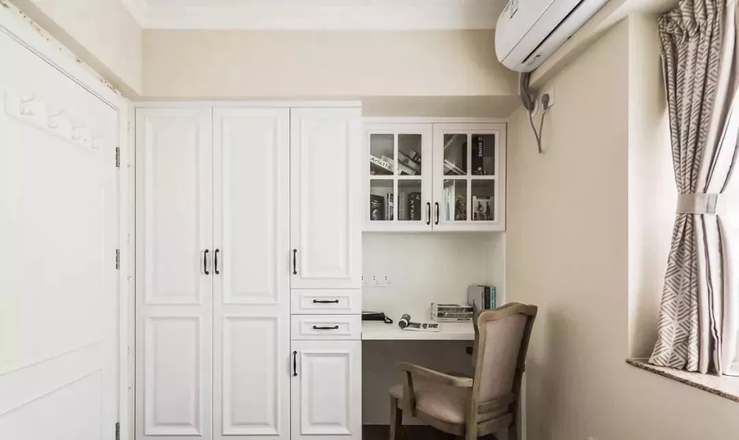 衣柜+书柜一体式设计,满足收纳的同时,还给打造了长辈一个独立的阅读区。