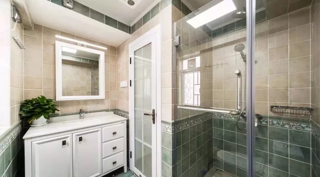 主卫客卫的卫浴柜风格一致,只是在墙砖的颜色上稍做区别。