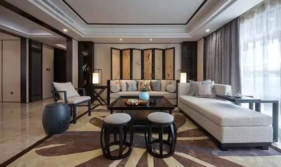 客厅布置很大气典雅。中式风格发挥的淋漓尽致,沙发背景墙用屏风造型来装饰,古朴艺术。沙发边的台灯造型带着古朴的感觉。沙发整体乳白色,点亮客厅的同时,给人一种耳目一新的感觉,不会显得因为中式装修所带来的沉重感。中式古典木质圆凳,古典美观,居家优雅的极致体现。光线在实木面上渡上岁月光华,不多但却精美的纹饰雕刻着现代都市对于中式装修的情结。华丽的外表蕴含着古典的韵味,塑造令人叹赞的精品生活。