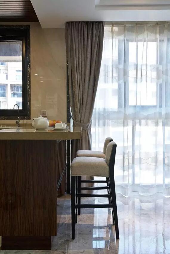 厨房边的小吧台摆上茶具,坐着聊聊天,品品茶。