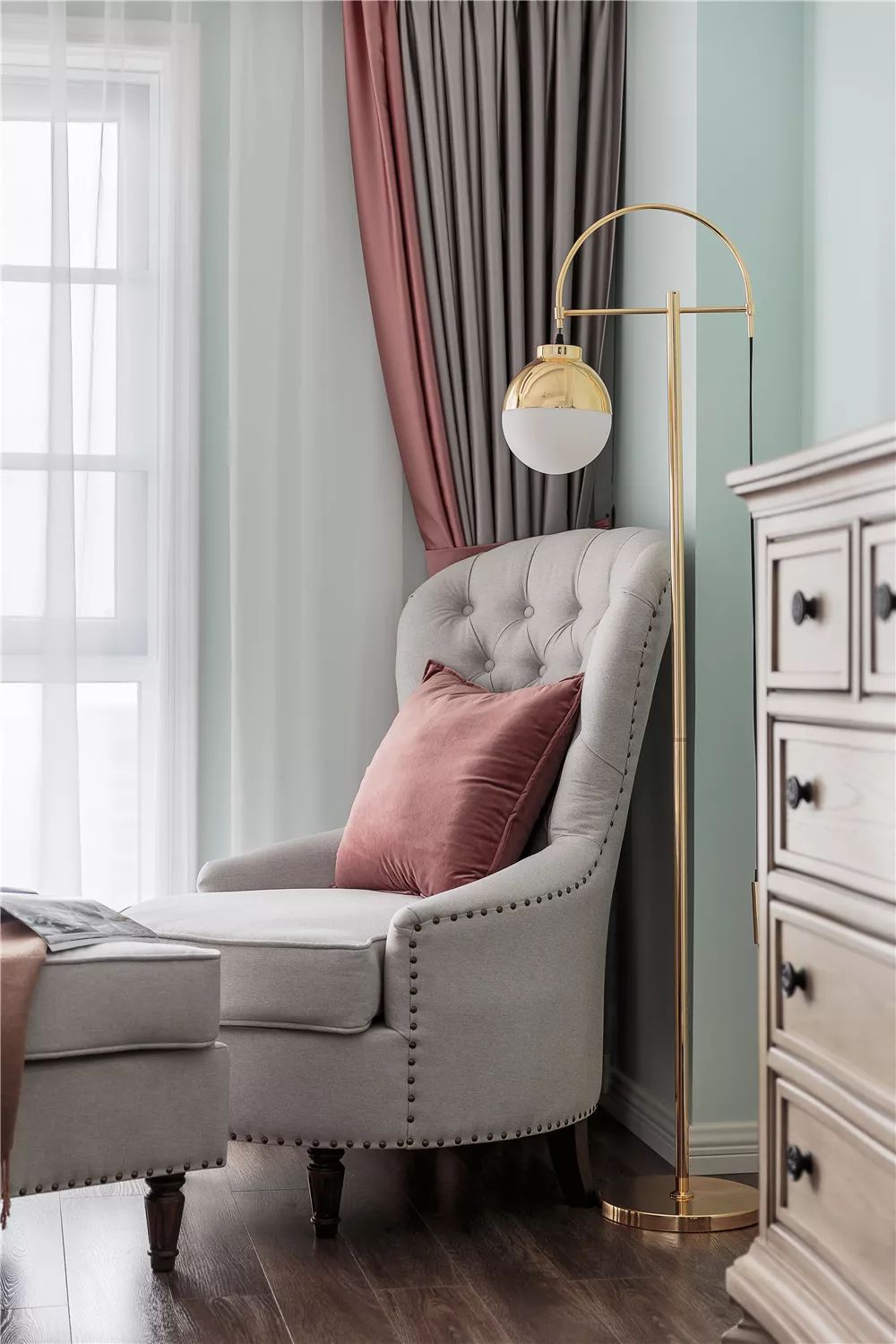 ▲卧室阅读角平时看书,午后小憩,都是极为的方便。一旁的斗柜帮助增加收纳空间,精致的落地灯也特别的吸晴。