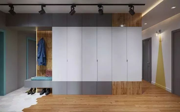 如果整个房间实在是找不出地方可以改造成衣帽间,可以在房间过道上加以利用,两面的墙壁是最好的依托,采用嵌入式设计,内部做好分层工作就可以。
