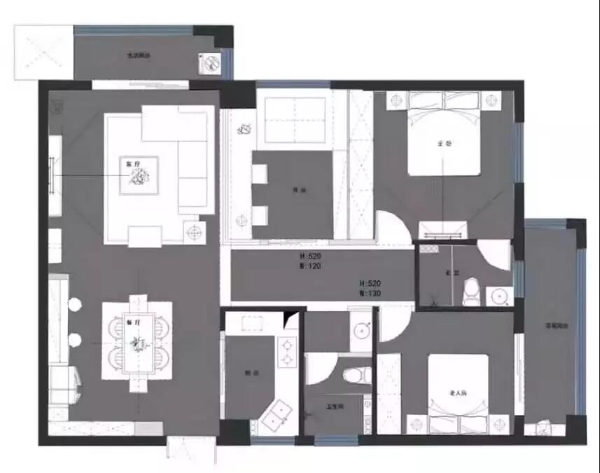 ▲黑色的餐桌椅,白色的餐边柜,灰色墙面,经典的黑板灰搭配,耐看不过时。