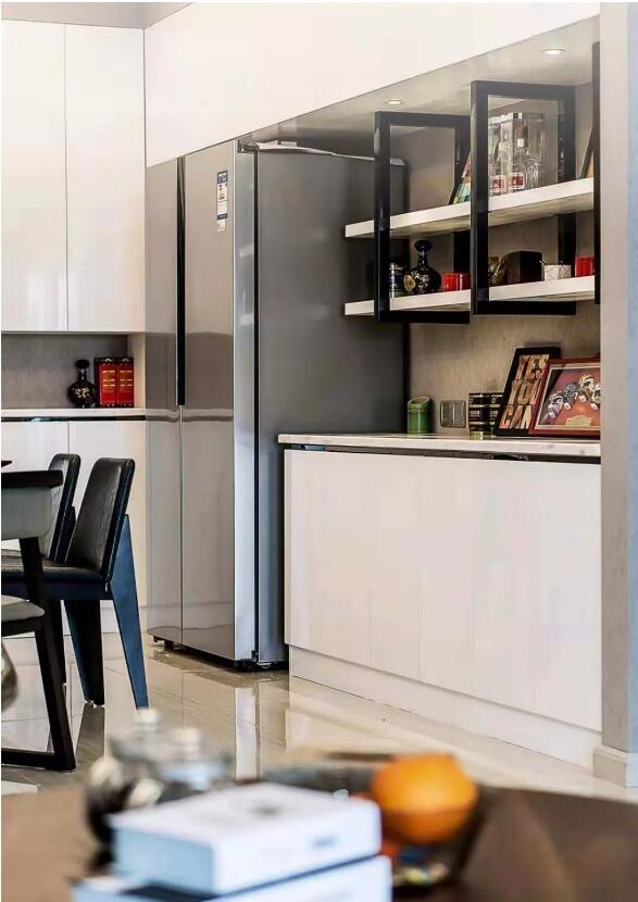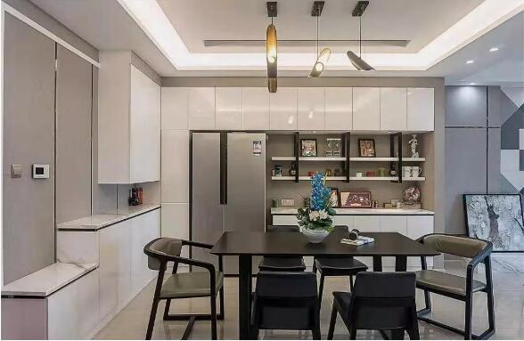 ▲嵌入式的冰箱,保证了餐厅的整体性,同时也能扩到厨房面积。