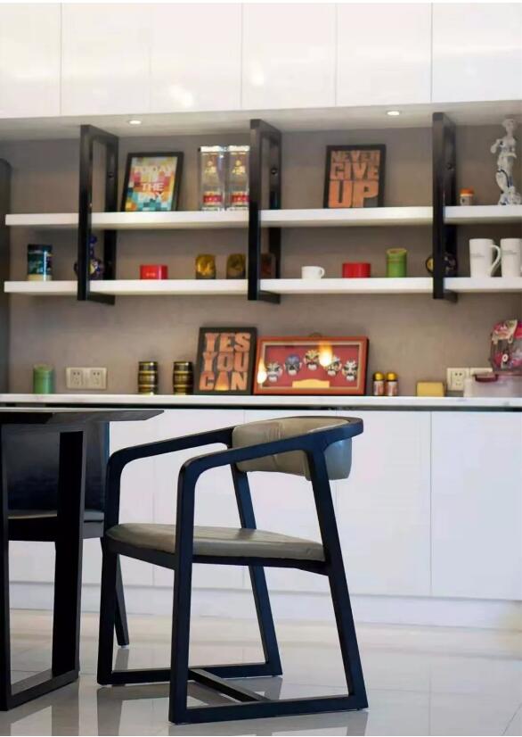 ▲餐边柜上方设计了开放式的层板架,实用显得十分方便。
