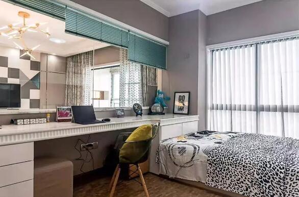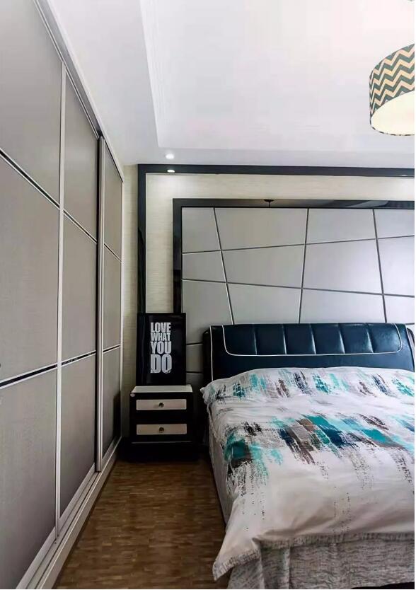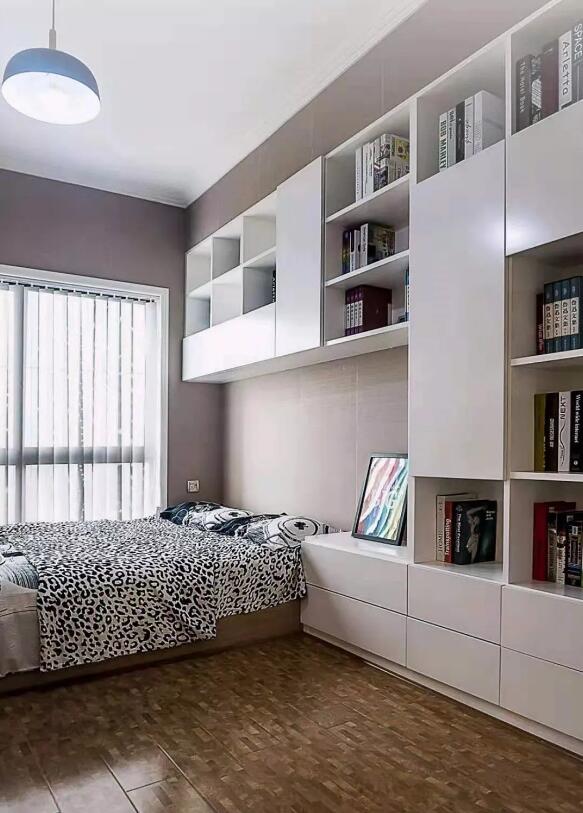 ▲业主想要大书柜,但不是那种死板的书柜,所以设计师采用有门+无门随意排列组合的书柜,呈现出来的效果更符合年轻人的审美,同时还结合设计了一个床头柜,为设计师的这个小心思点个赞。