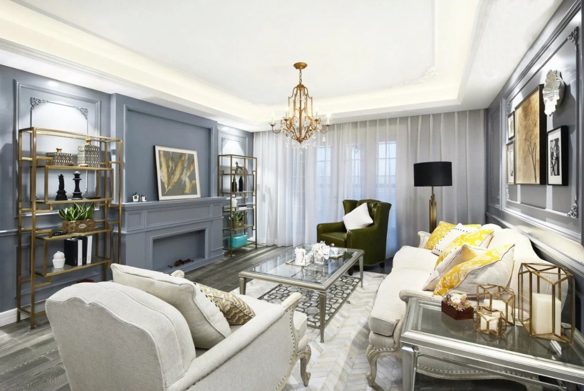 ▲因为业主比较喜欢Bling Bling的精致感,所以客厅选择了水晶吊灯。