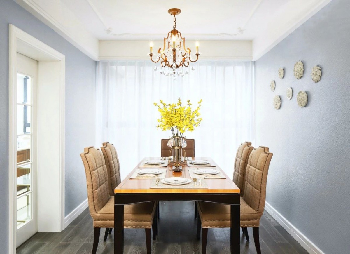▲灰白色调的餐厅加入暖色调的餐桌椅,很是温馨。