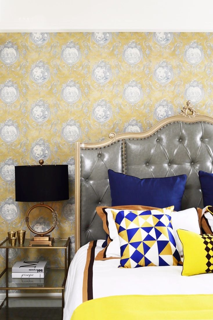 ▲精致复古的床头柜和台灯优雅迷人,提升空间格调。