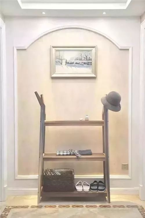 摆放原则:靠角落摆放,以不妨碍出入为妙。玄关角落位置与其空着,置物架的摆放既可以增加收纳空间,又可以作为一个装饰品存在。加上植物盆栽的摆放,清新又自然。