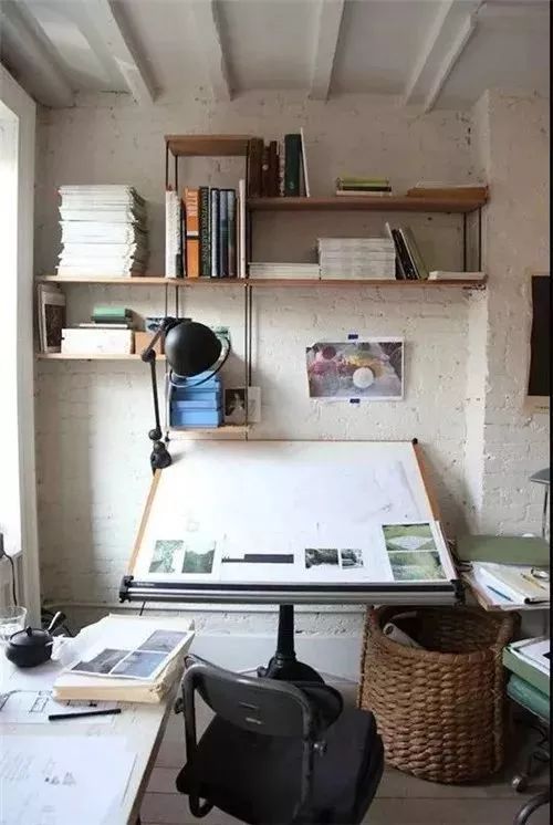 置物架不一定要落地的,简单的小搁板就可以满足收纳、装饰的功能了。无处安放的杂志、还有那努力往上生长的植物,都在墙上置物架找到了最舒服的位置。