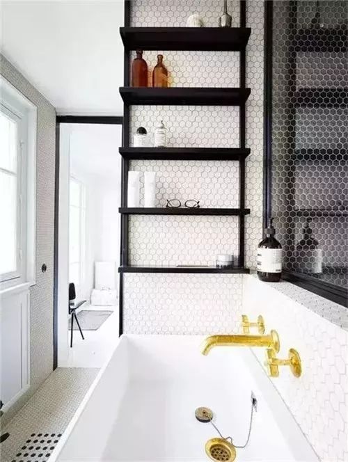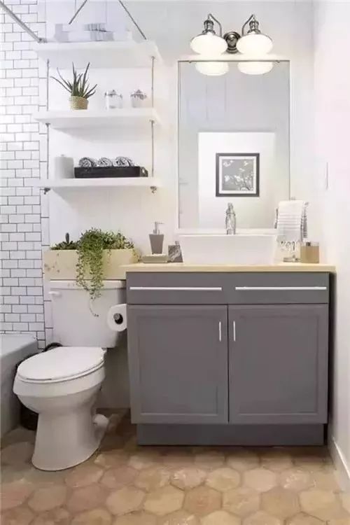 置物架对于小户型卫生间来说非常实用,放不下占地光的卫浴柜,置物架可以充分利用马桶上方的1㎡,把卫生间的杂物收纳轻松解决。
