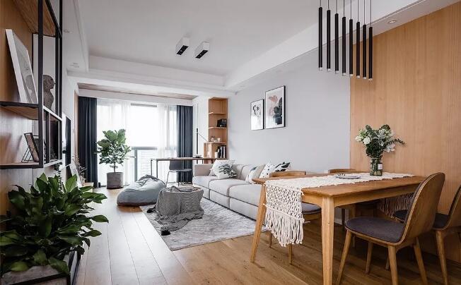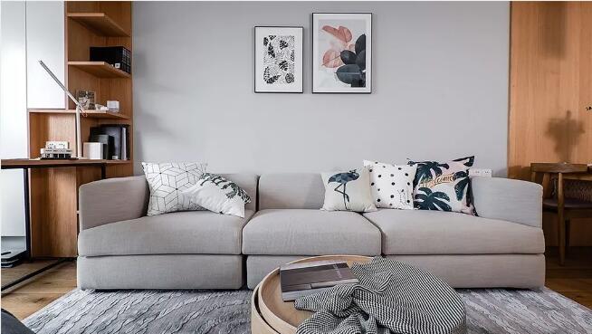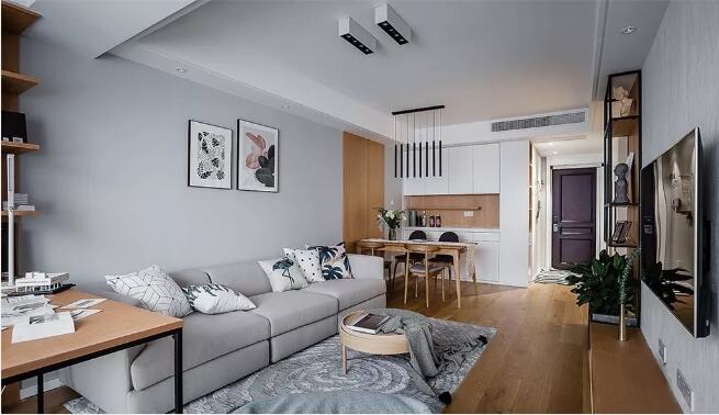 全屋通铺木地板,墙面刷浅灰色漆,将原木搭配灰色的美感发挥到极致,营造一个放松身心的空间。客厅软装和硬装的结合,打造出简约大气的氛围,温柔而有力量。