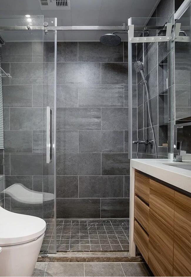 卫生间为经典的大理石,墙面采用工字型铺贴,时尚干净的色调搭配,实用又大气。