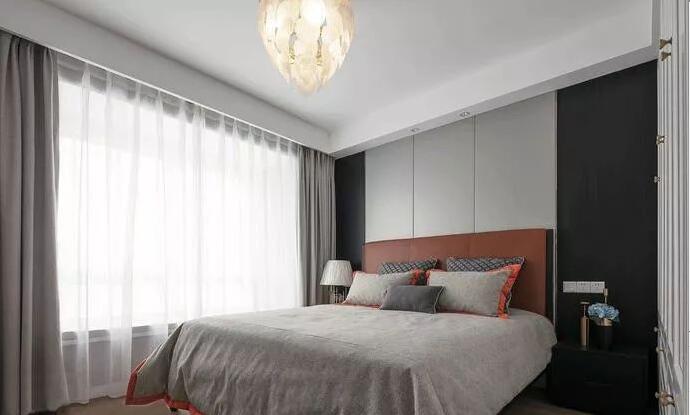 ▲黑白灰作为经典色被运用到了主卧之中,加上橙色软装的点缀,让整体不显沉闷,高雅奢华许多。