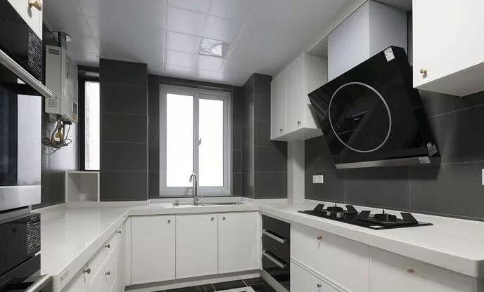 ▲厨房整体用白色橱柜搭配黑色家电,简约至上,又不失时尚感。