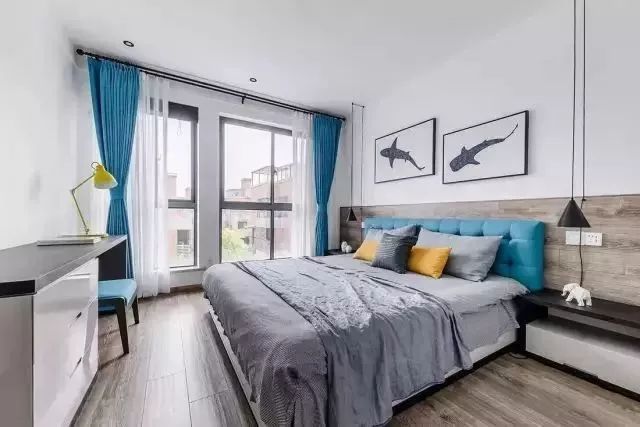 如果说卧室的衣柜只占到了墙面一半,剩余空间你会怎么利用?如果刚刚好又有一个窗户,这个时候果断选择设计一个书桌,大小很合适,采光更加好,岂不是物尽其用。