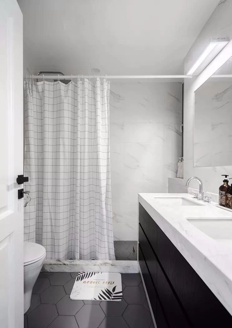 对于小户型来说,卫生间的面积相对较小,玻璃隔断会让原本就较小的卫生间显得过于拥挤。那么浴帘作为隔断的话,整个空间在展开后就显得宽敞大方多了。浴帘同样可以实现干湿分离的功能,防止淋浴时水花四溅。