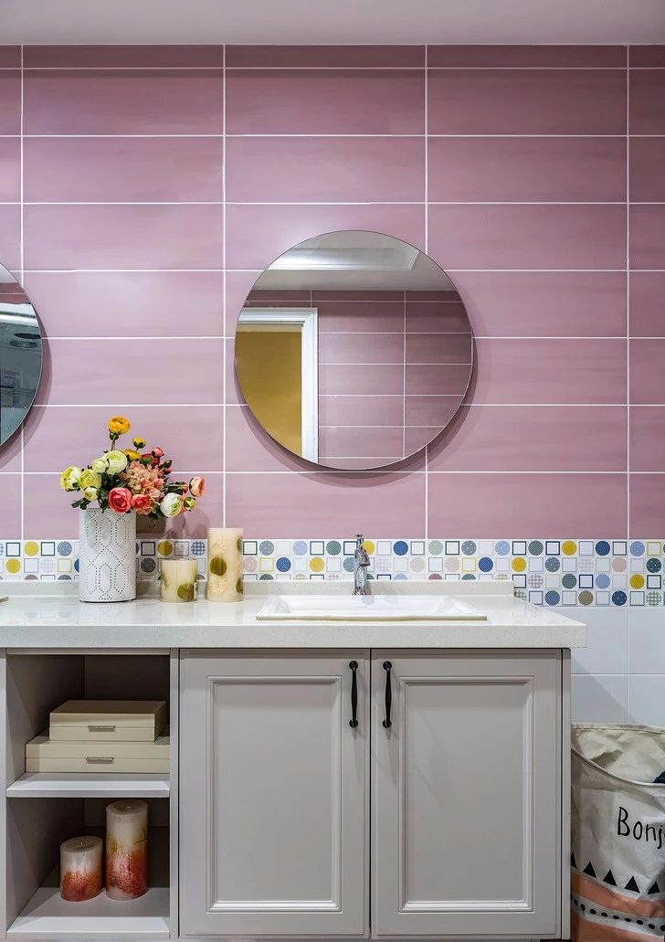 马赛克装饰效果好,但材料价格和工费都比较贵,而且使用马赛克的地方要想安装毛巾杆或置物架只能选择打膨胀螺丝的方法,使用吸盘式较为困难。马赛克不好打理,容易藏污纳垢。所以尽量用在干区!