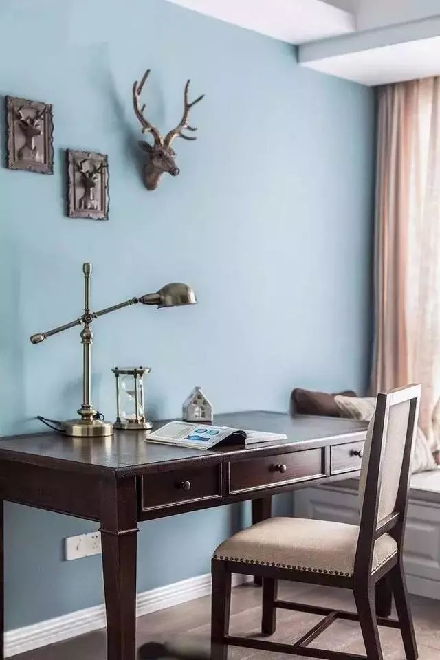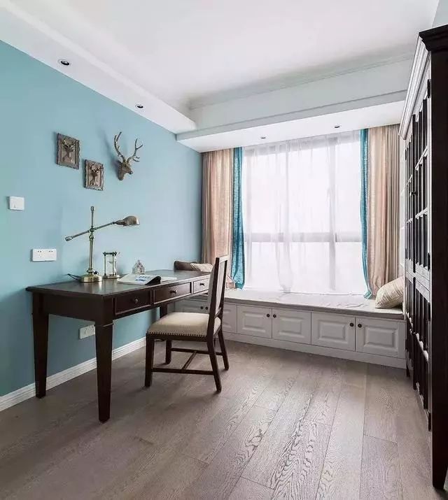 ▲蓝色代表着沉稳,用于作为书房的背景色非常合适。书房安静简洁,有助于集中精力。飘窗榻榻米的设计更是为了业主留出一方静谧,便于久读后休憩,享受闲适与自然。