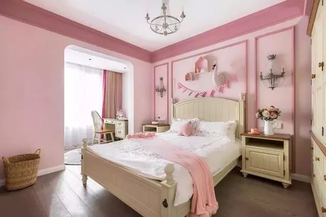 ▲粉嫩嫩的儿童房,小姑娘一定会爱上的梦幻系。床品选择了浅色系,增添清新的味道。房间内设计了大面积的柜体,满足小姑娘的衣物收纳需求。