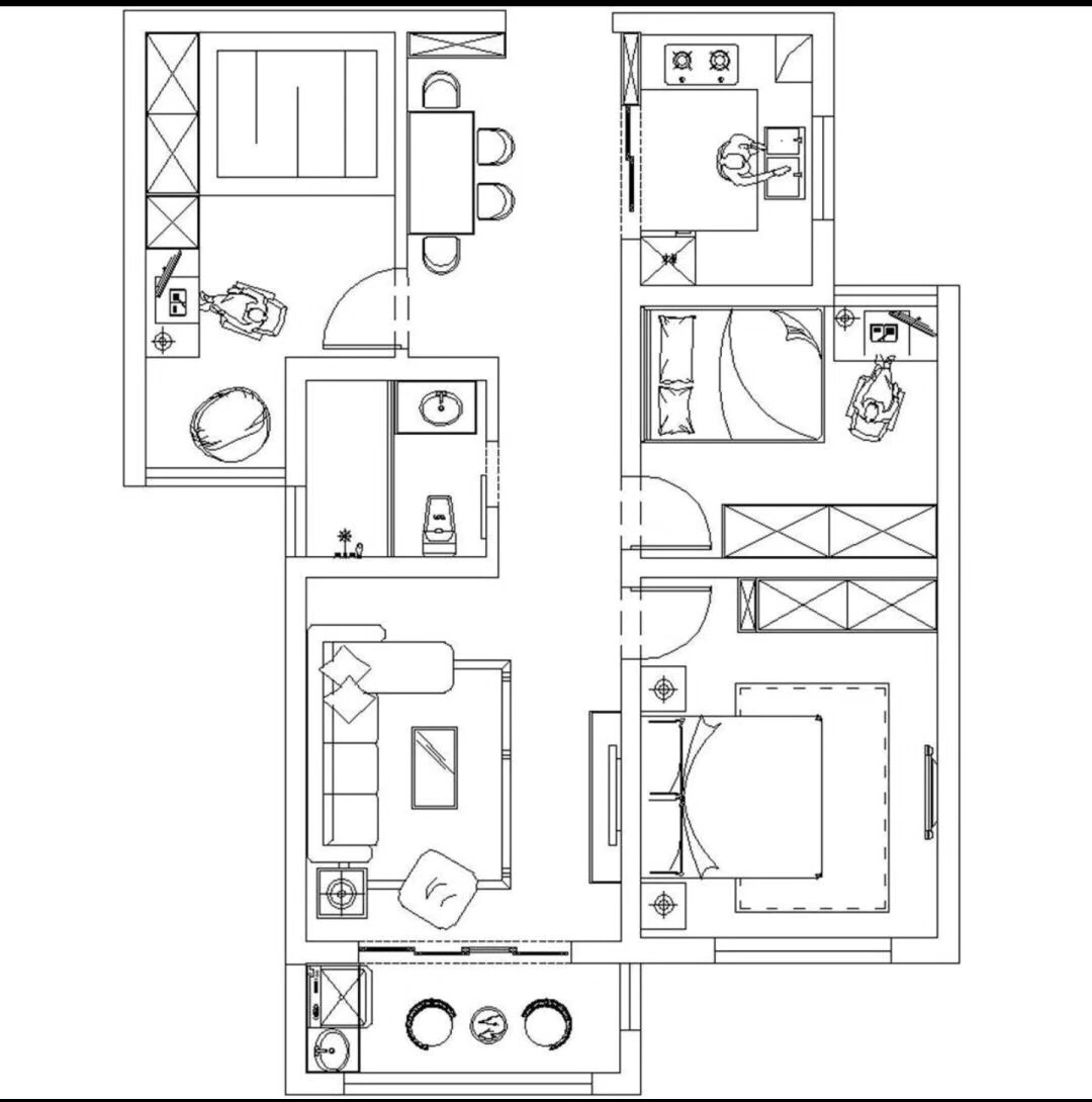餐厅作为主人用餐区、通过吊顶、装饰挂画、来体现主人对生活品质的追求。设计师选择了靠门位置放置餐厅让业主也有了一种进门就能忘却浑身的疲惫美美的吃上一餐饭的感觉。