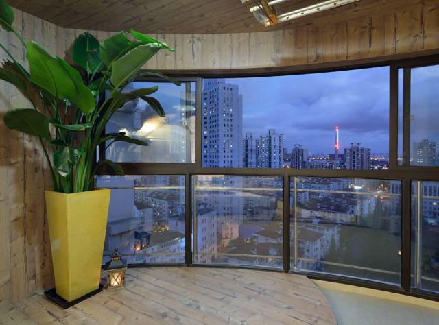▲圆弧形的阳台落地窗提供了极佳的采光和视野,在这里驻足眺望真是让人羡慕
