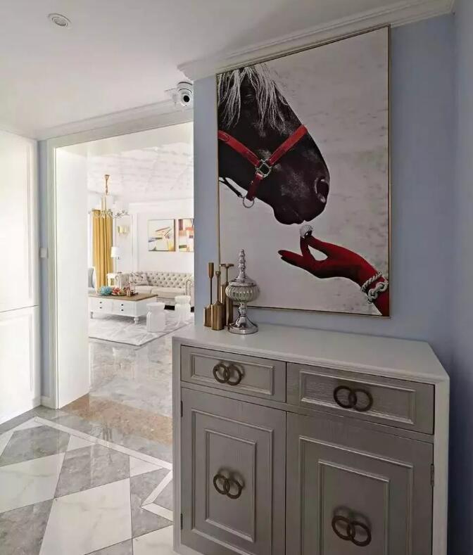 一进就看到玄关高逼格的充满艺术气息的装饰画,是不是视觉冲击感很强烈呢?高颜值的鞋柜看起来很美观呢。