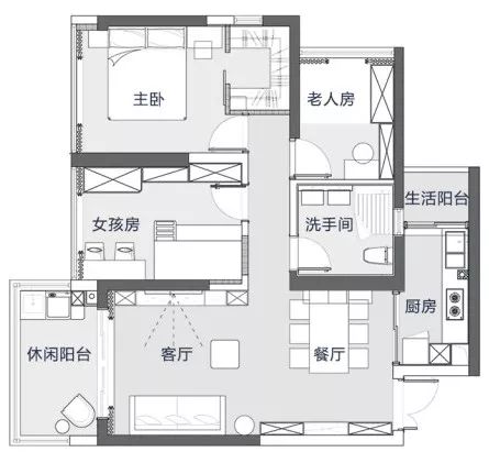 今天分享的是一套户型较为紧凑的三居室,设计师以轻松时尚的设计来满足一家四口人的居住要求。软装选择了格调满满的木质家具,营造出简约、轻奢的感觉。在这个"少即是多"的时代里,设计师把心思全部放到了软装搭配和装饰上,让整体看起来更加具有现代时尚感。不仅满足了老人的需求同时也超出了户主人的心理预期。