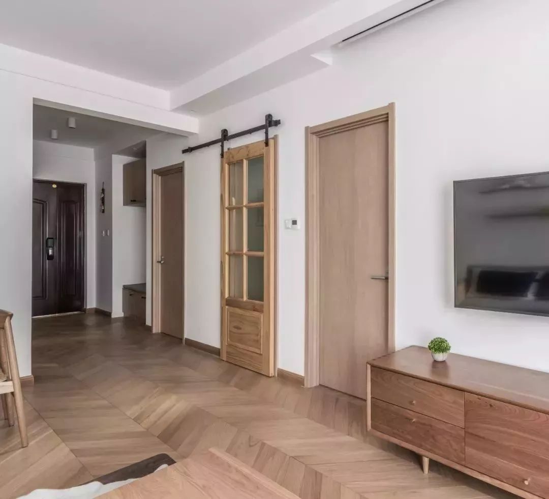 ▲不知道大家有没有发现这家的木地板的铺设和普通地板铺设不同寻常呢?设计师以人字形铺设的地板,让整个家都显得活力十足,氛围轻松。