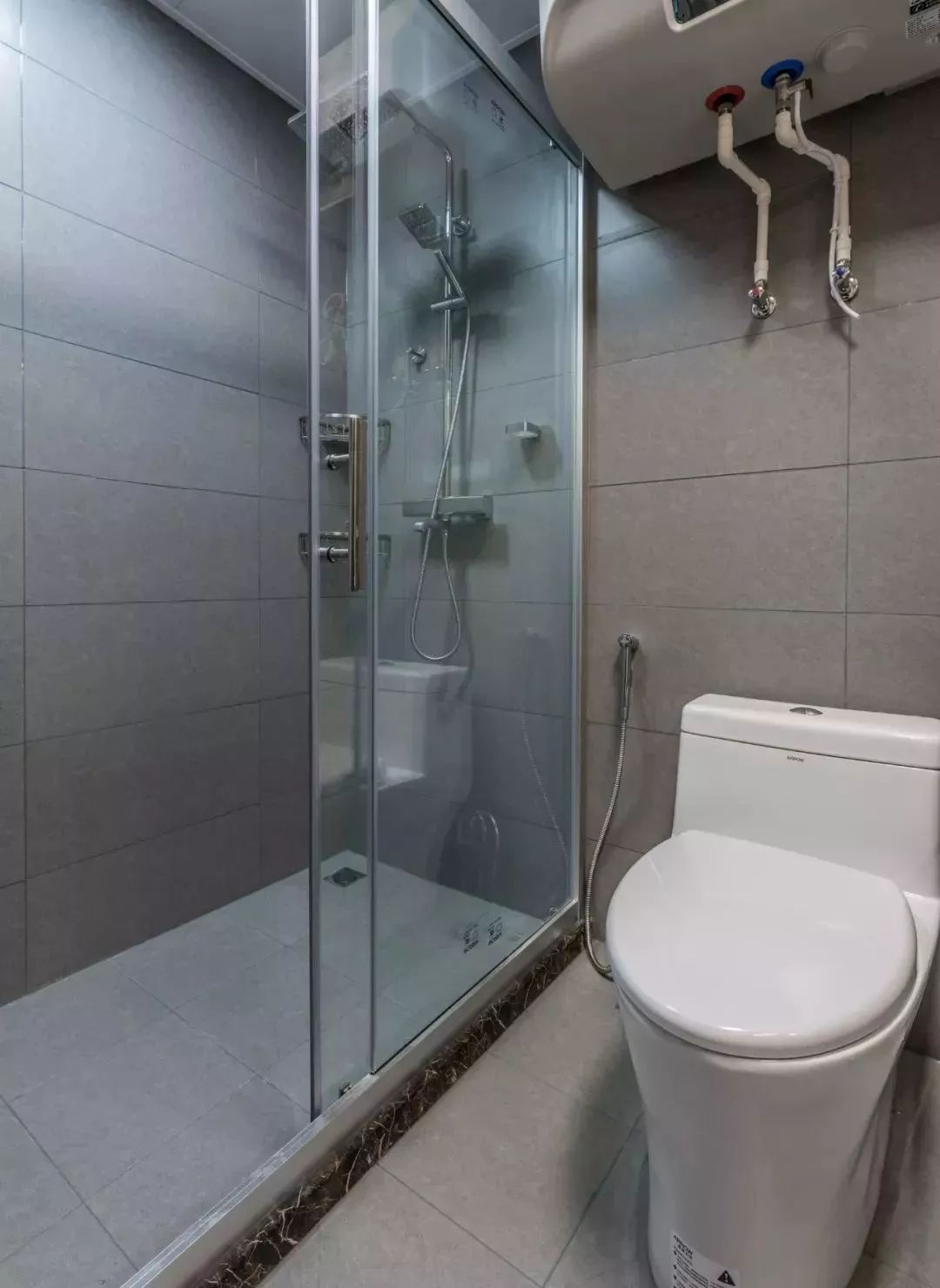 ▲卫生间也是以灰色调为主,嵌入式的洗衣机的放置位置让整个空间都变大许多。