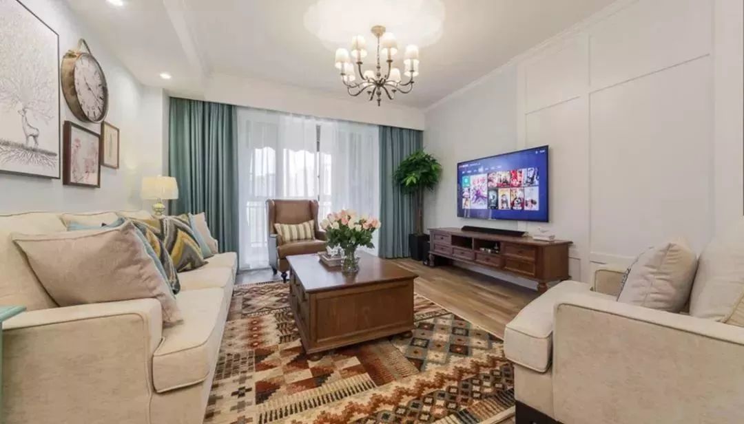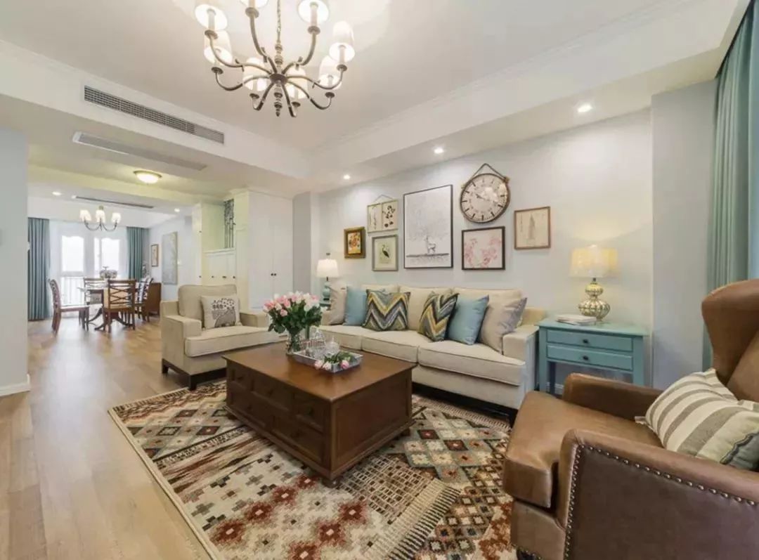 青岛鸿图装饰给大家分享的是一套清新是美式风格的装修效果图,118㎡三室两厅,清新自然让人意料之外的好看。