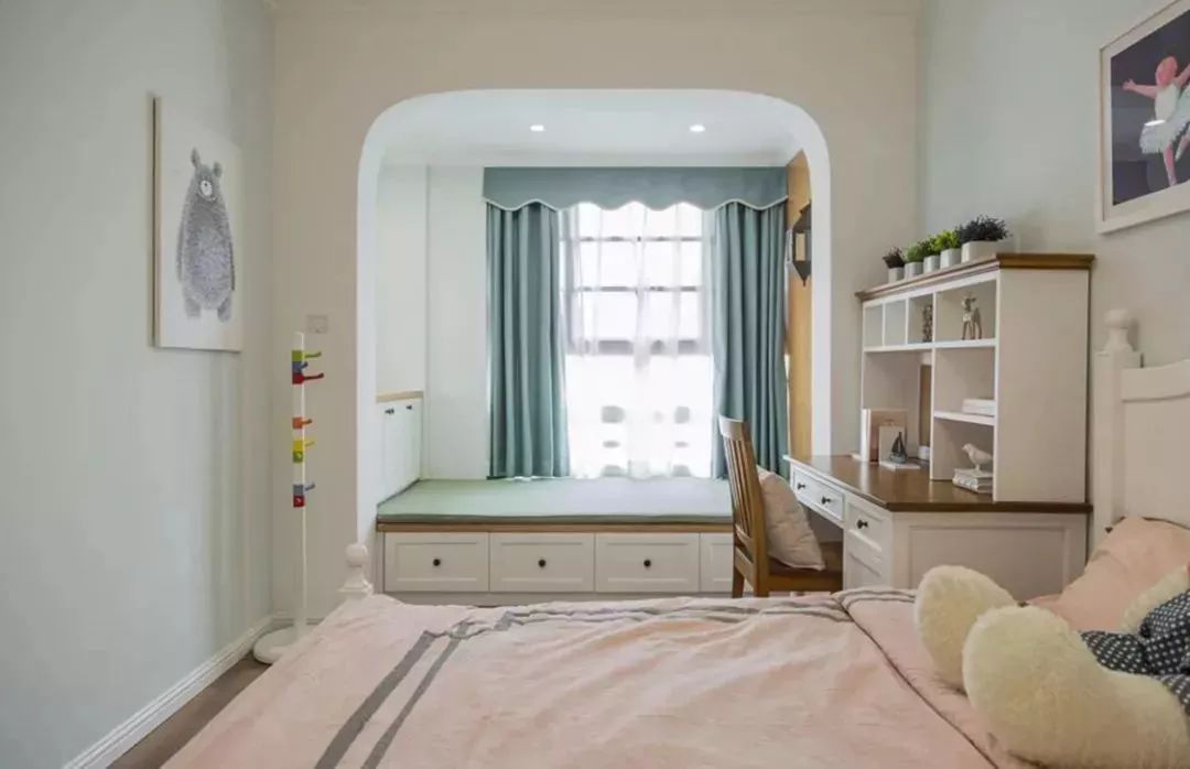 ▲设计师在阳台设计了飘窗的设计,完全可以被当成儿童的休闲区,学习完了坐在这里看看窗外眺望一下远方,舒适又放松。