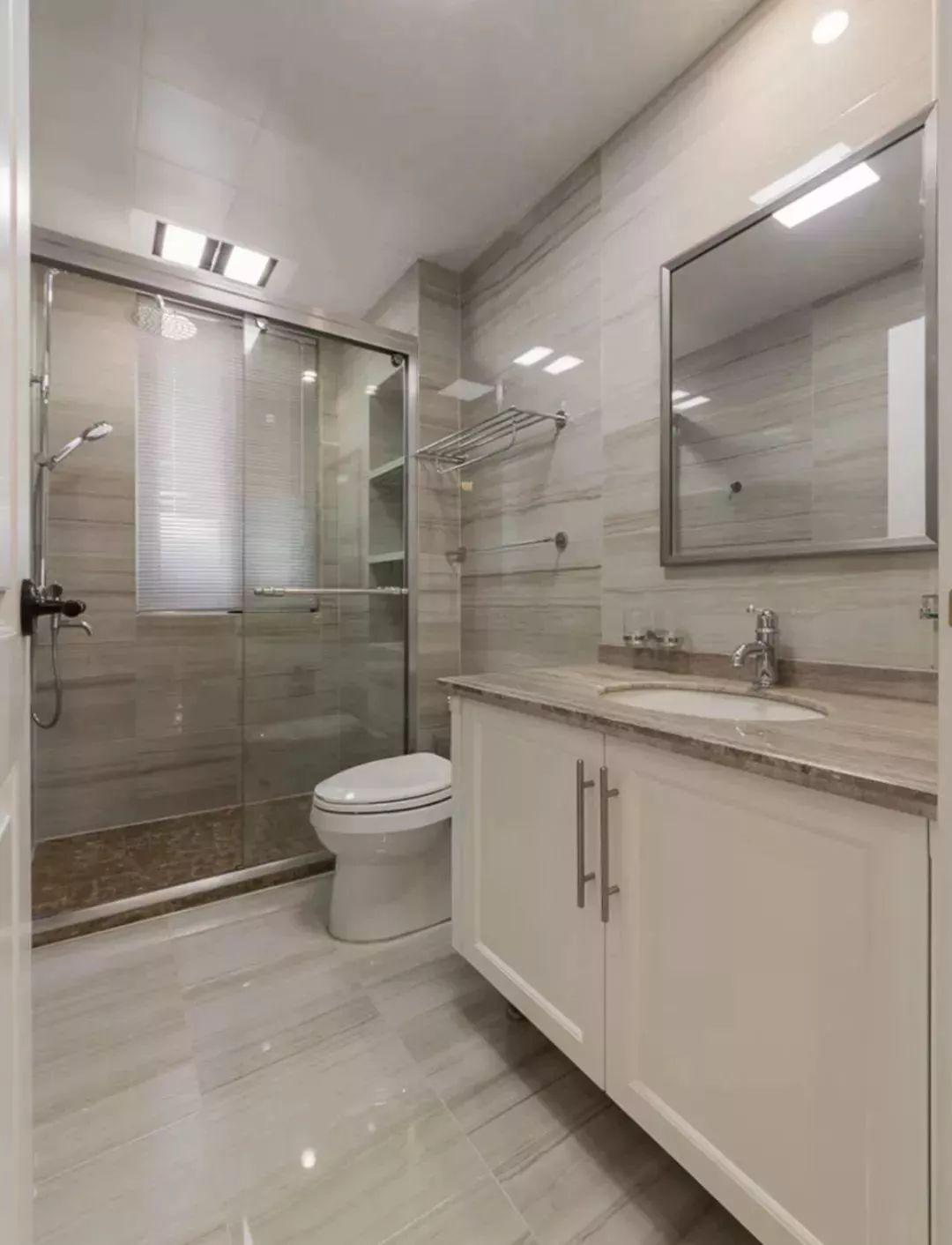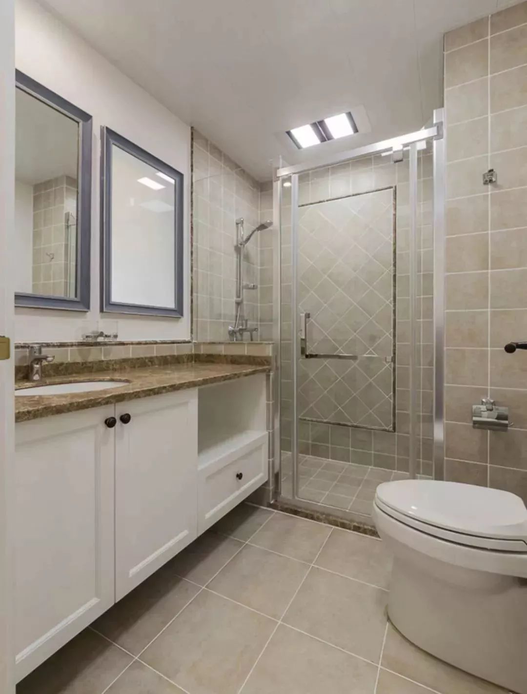 ▲主卫延续了现代美式的空间,仿古砖张贴的墙面地面,让小空间也充满了温馨与档次感。