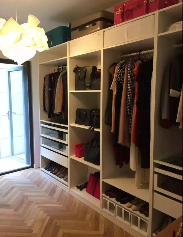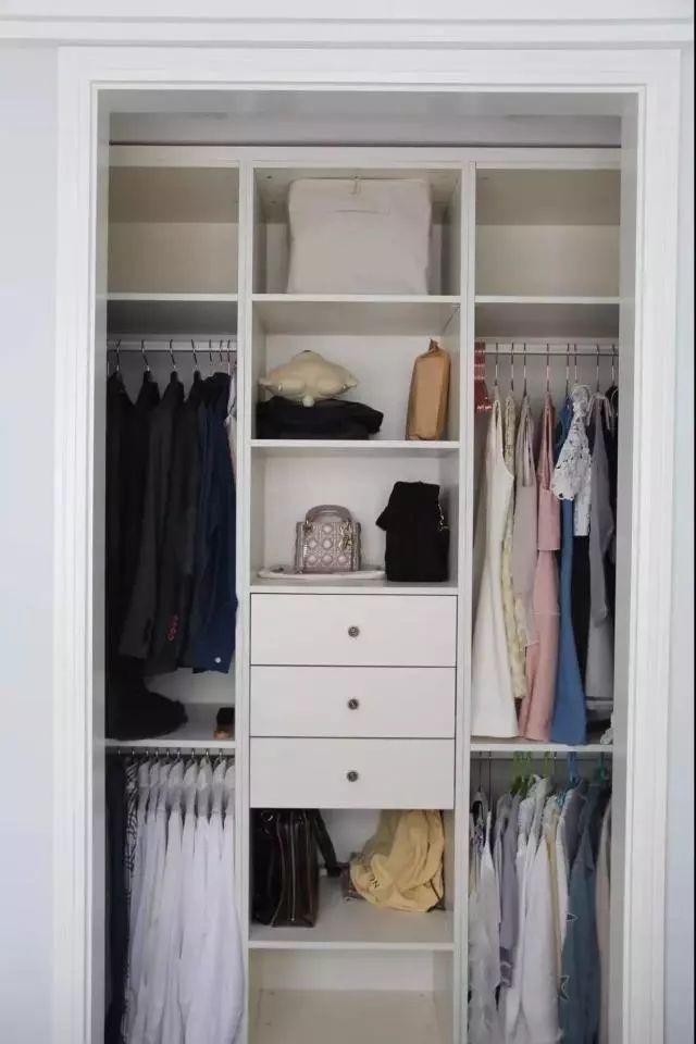 很多家庭的衣柜里会像下面这样,密密麻麻打一堆高低不同的隔板,用着用着就会发现这些隔板不是放不满、就是太深东西不好拿取。