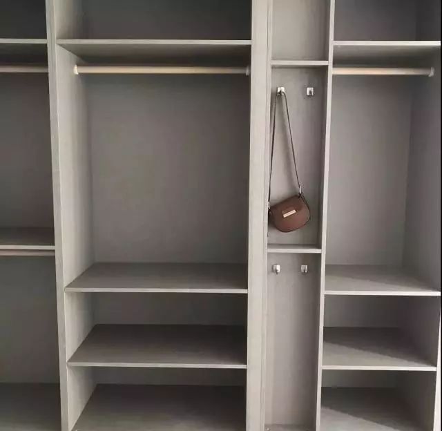 低隔板:低隔板做在衣柜的底部位置,专门储藏帽子和包包之类的,建议可以根据包的大小定制不一样的隔板格,减少垂直空间的浪费。